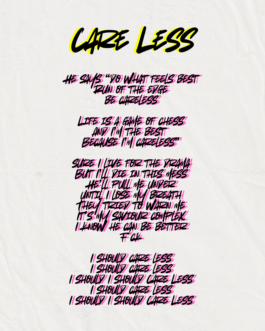 “To Care Less” - to have reduced concern, interest or emotional investment in someone or something after caring a lot, maybe even too much.